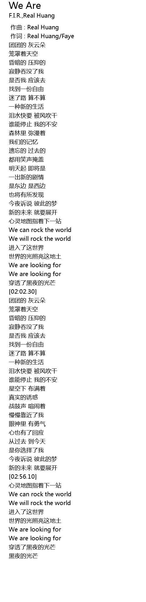 | [00:01.00] | 作词 : Real Huang/Faye |