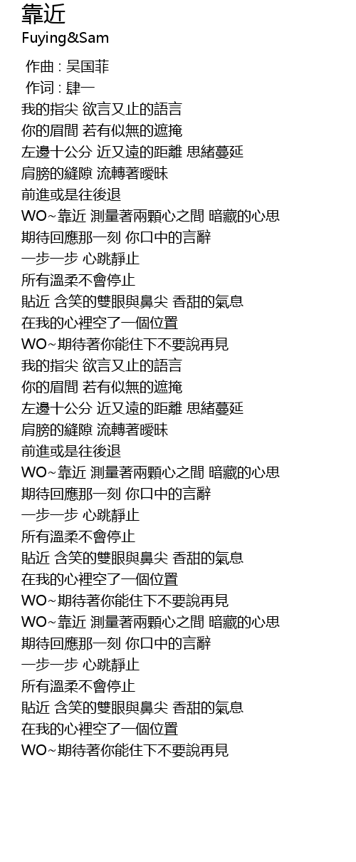 | 歌曲 | 靠近 |