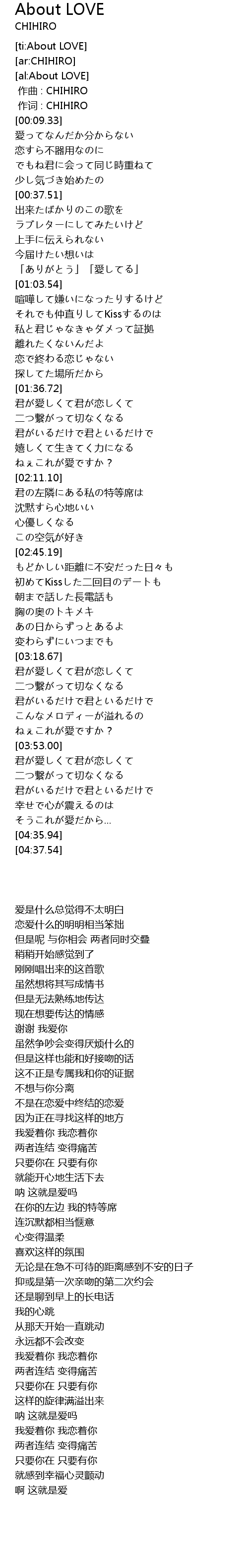 | [01:38.02] | 君が愛しくて君が恋しくて |