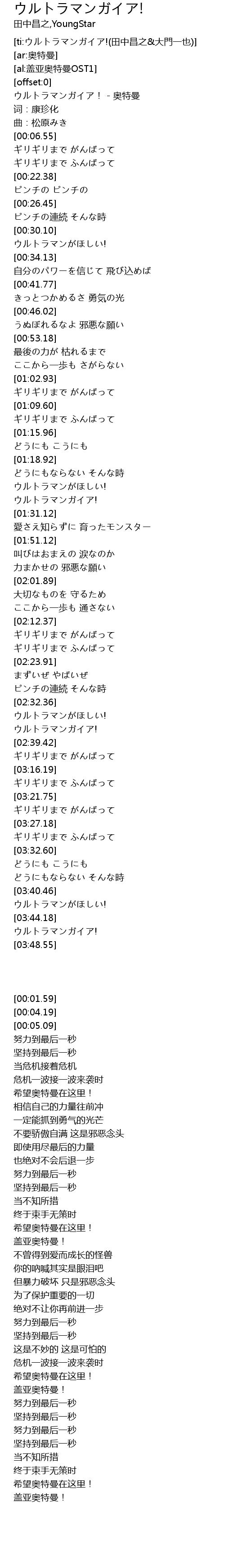 | [00:01.59] | ウルトラマンガイア! - 奥特曼 |