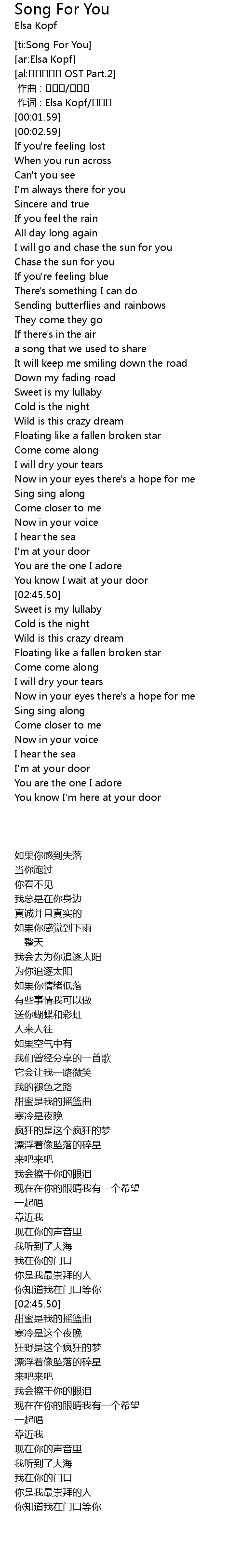 | [00:00.353] | zuò cí : Elsa Kopf |
