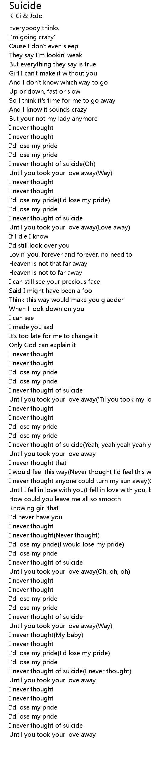 I never thought of suicide(Yeah, yeah yeah yeah yeah yeah yeah) |
