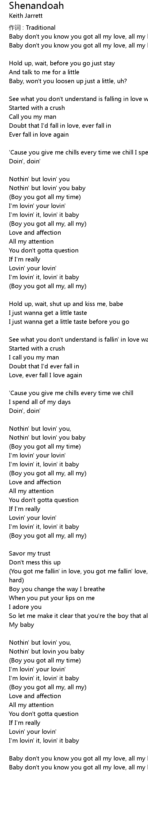 | Baby don't you know you got all my love, all my love | |