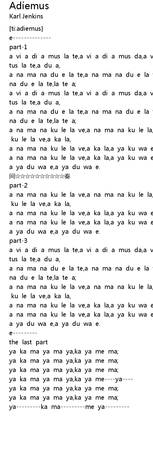 | [00:19.481] | a na ma na du e la te,a na ma na du e la te,a na ma na du e la te,la te a; |