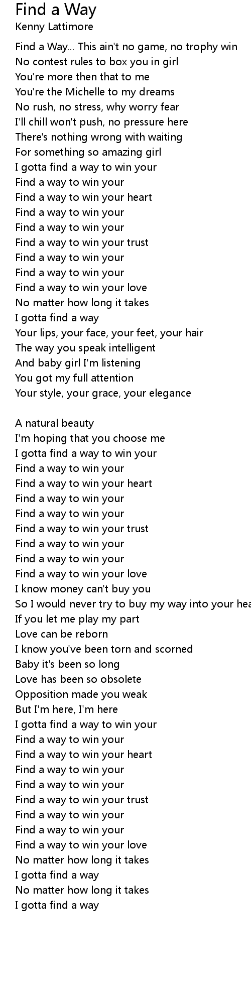 I gotta find a way to win your |