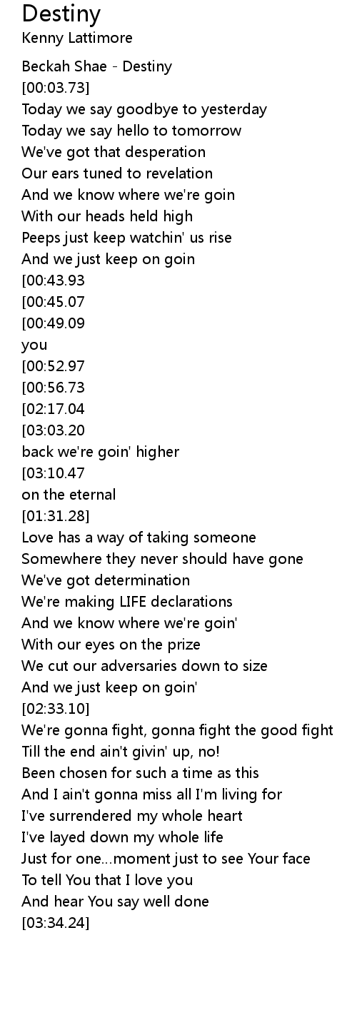 | [00:01.12] | Beckah Shae Destiny |