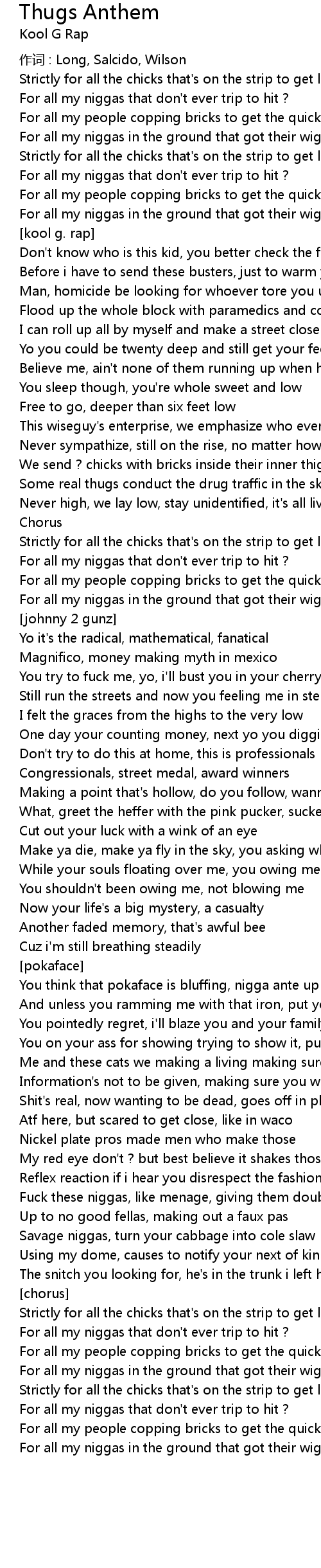 | 歌曲 | Thugs Anthem |