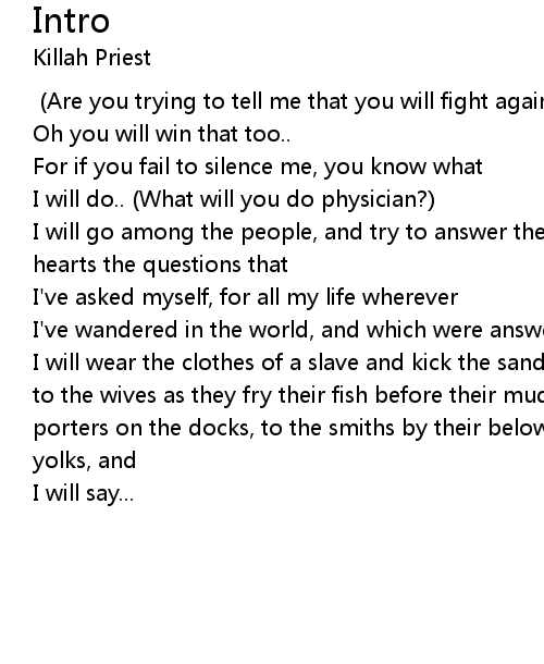 I will wear the clothes of a slave and kick the sandles from my feet, and speak to the wives as they fry their fish before their mudhuts by the river to the porters on the docks, to the smiths by their belows to the slaves under the yolks, and |
