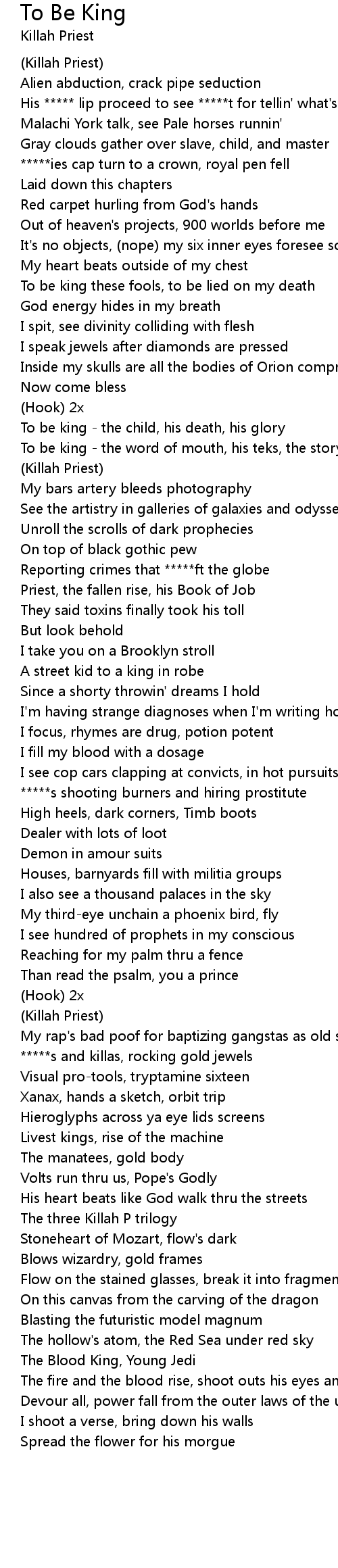 To be king - the word of mouth, his teks, the story |