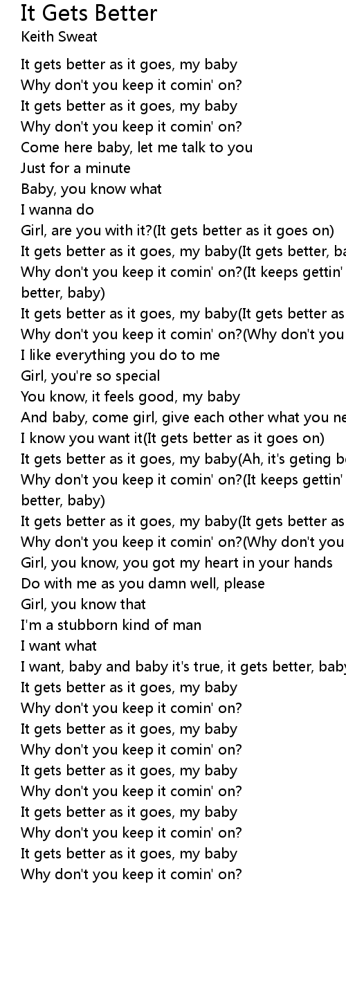It gets better as it goes, my baby(Ah, it's geting better) |