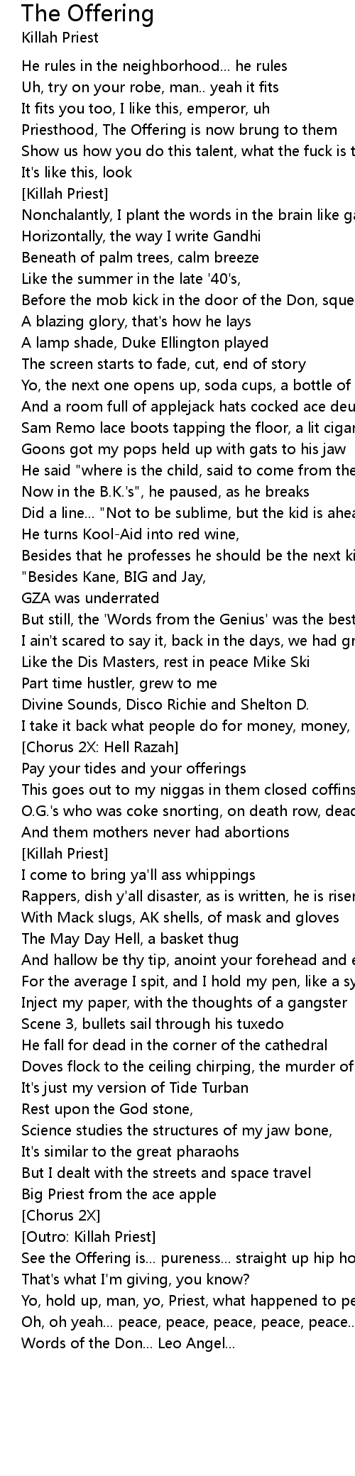 [Outro: Killah Priest] |