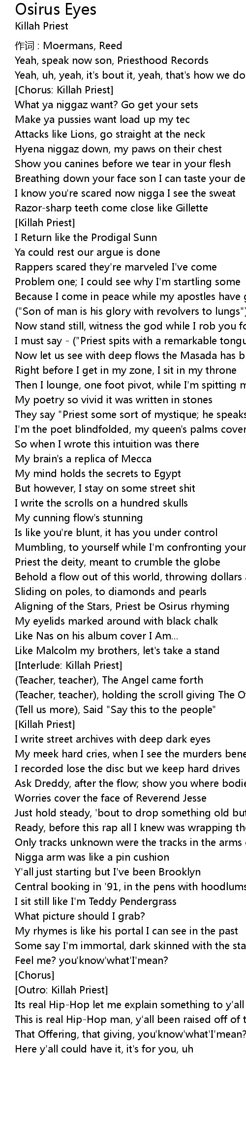 | [Chorus: Killah Priest] | |