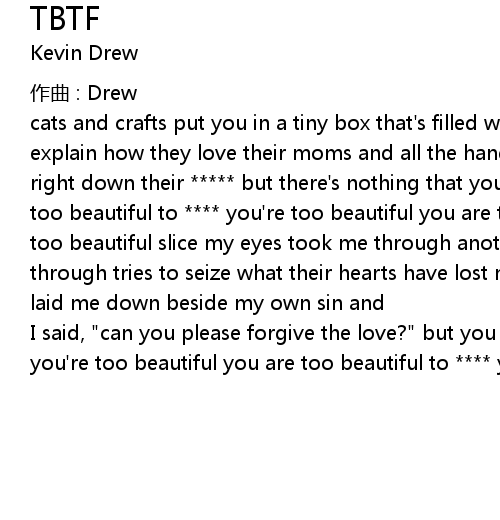 | cats and crafts put you in a tiny box that' s filled with our victims who can' t explain how they love their moms and all the hands that retreat they try to slip right down their but there' s nothing that you thought is wrong but you are too beautiful to you' re too beautiful you are too beautiful to you' re too beautiful slice my eyes took me through another night that goes all night through tries to seize what their hearts have lost my best friend took me in and laid me down beside my own sin and | |