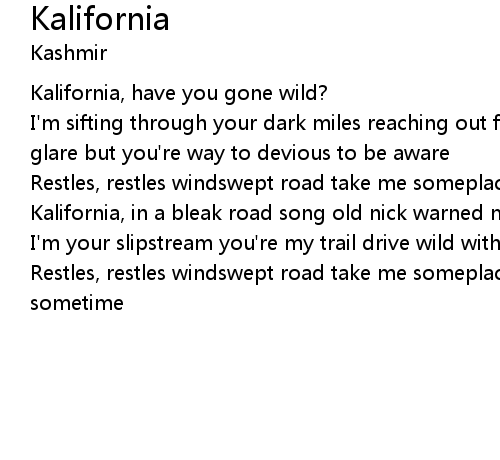 | Kalifornia, in a bleak road song old nick warned me against the storm but | |
