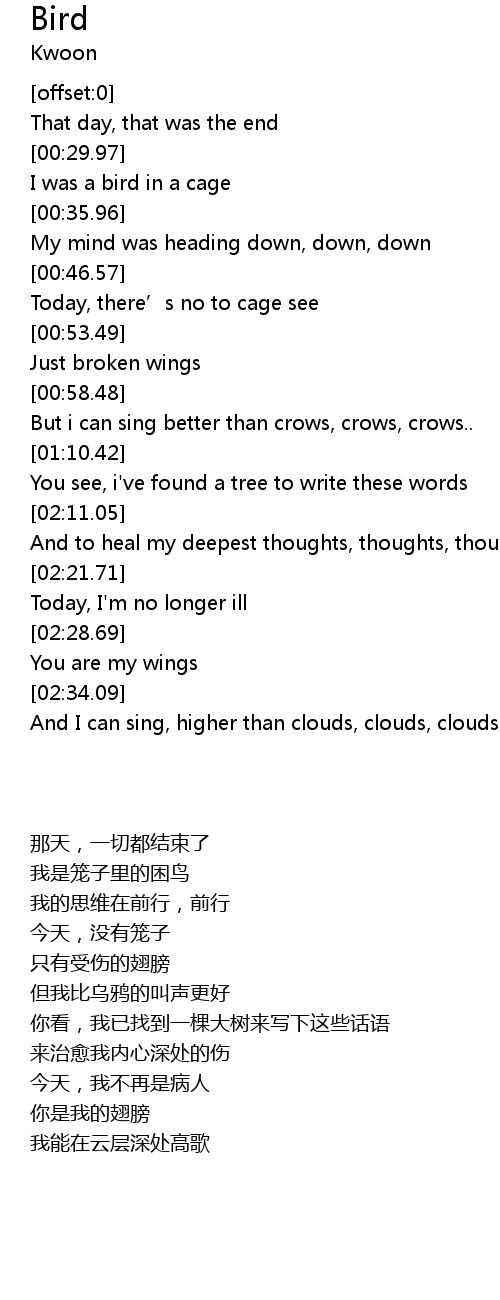 | [02:37.26] | And I can sing, higher than clouds, clouds, clouds.. |