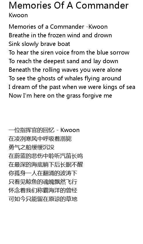 | [00:00.00] | 一位指挥官的回忆 - Kwoon |