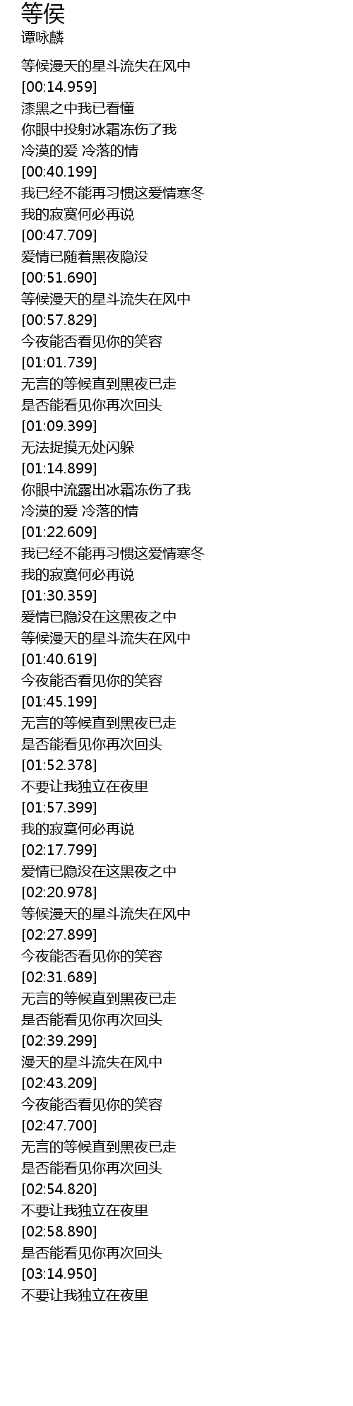 | [00:58.799] | 今夜能否看见你的笑容 |