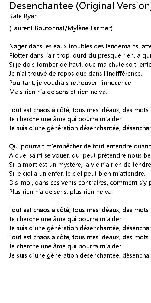 | Je suis d' une gé né ration dé senchanté e, dé senchanté e. | |