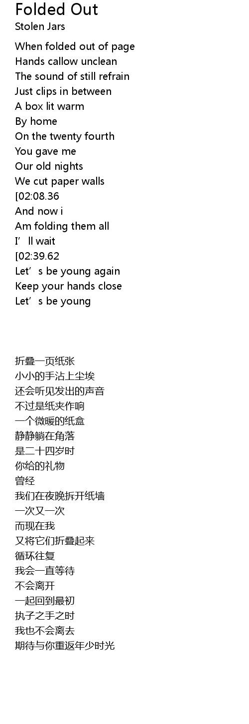 | [01:56.98] | 我们在夜晚拆开纸墙 |