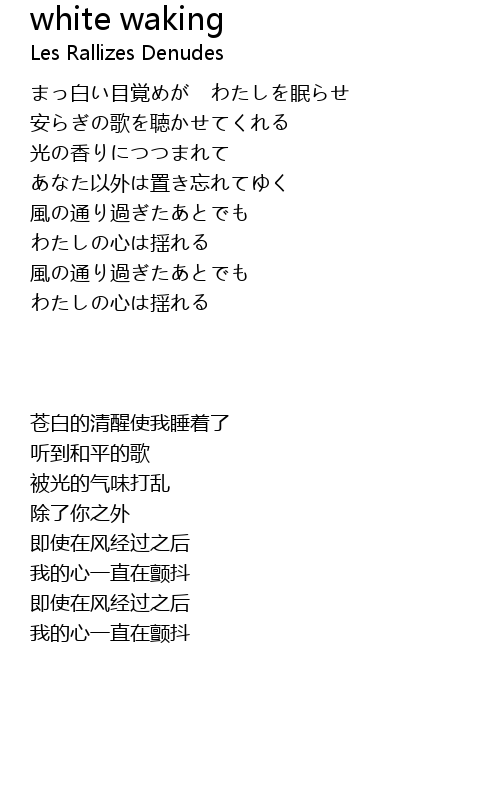 | [00:44.38] | まっ白い目覚めが わたしを眠らせ |