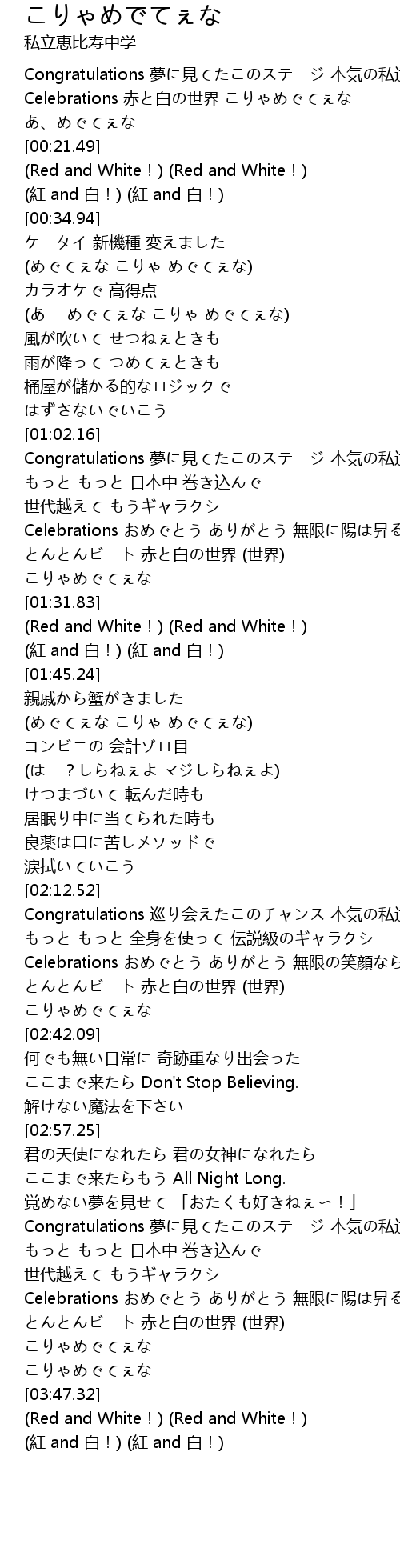 | [03:55.83] | (紅 and 白!) (紅 and 白!) |