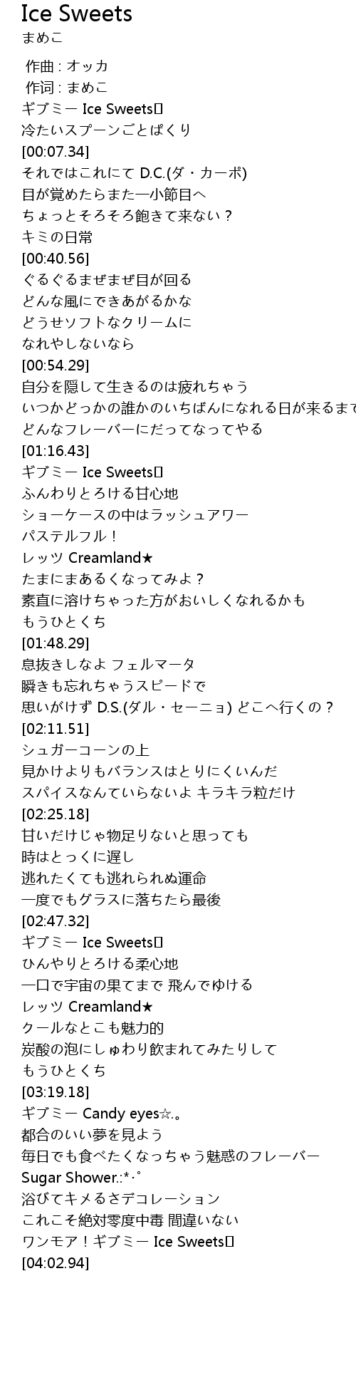| [01:17.20] | ギブミー Ice Sweets♡ |