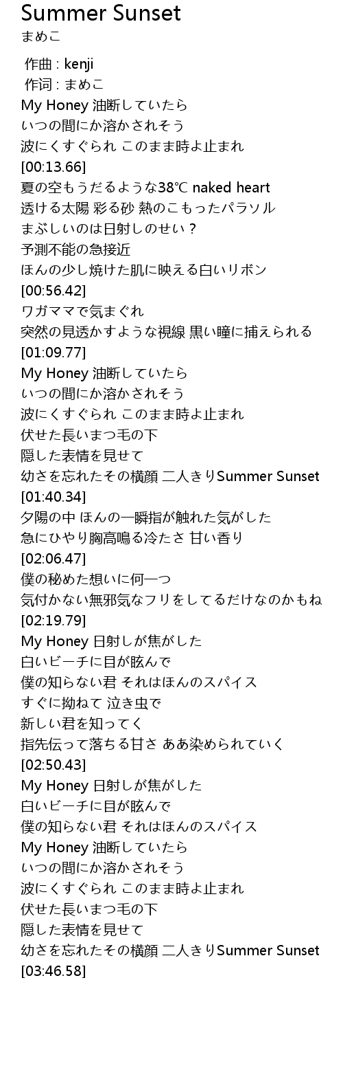 | [03:37.29] | 幼さを忘れたその横顔 二人きりSummer Sunset |