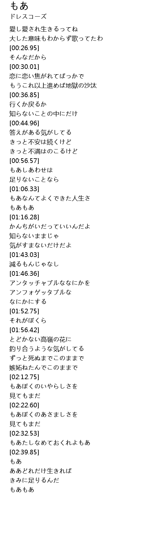 | [02:33.13] | もあたしなめておくれよもあ |