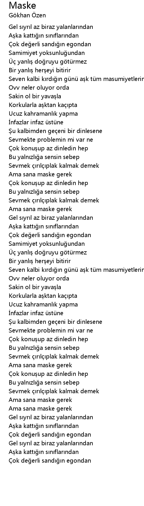 | [04:15.74] | Gel sıyrıl az biraz yalanlarından |