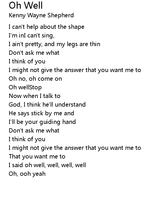| I said oh well, well, well, well | |