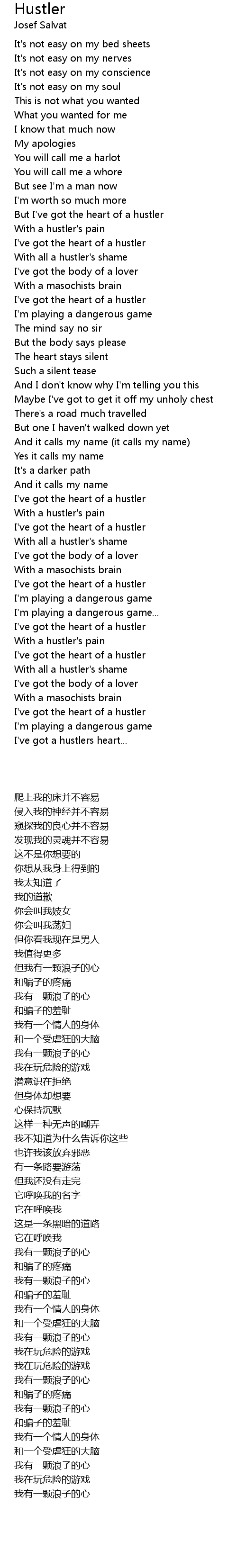 With a hustler's pain |