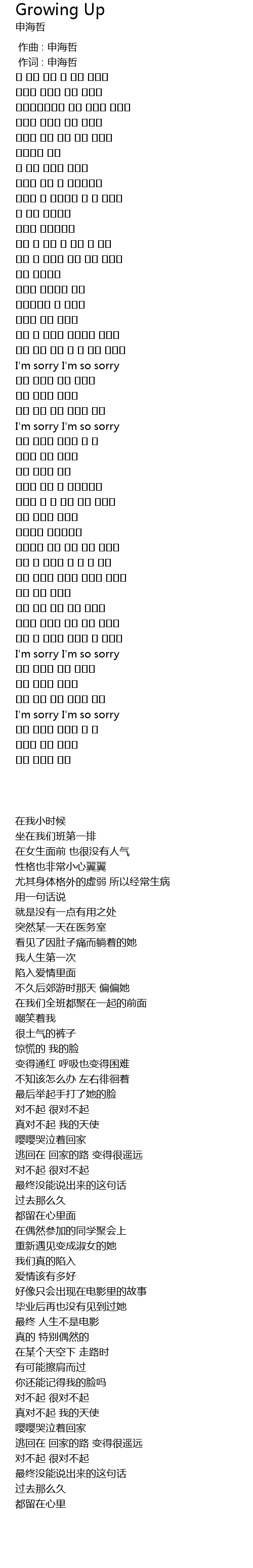| 歌曲 | Growing Up |