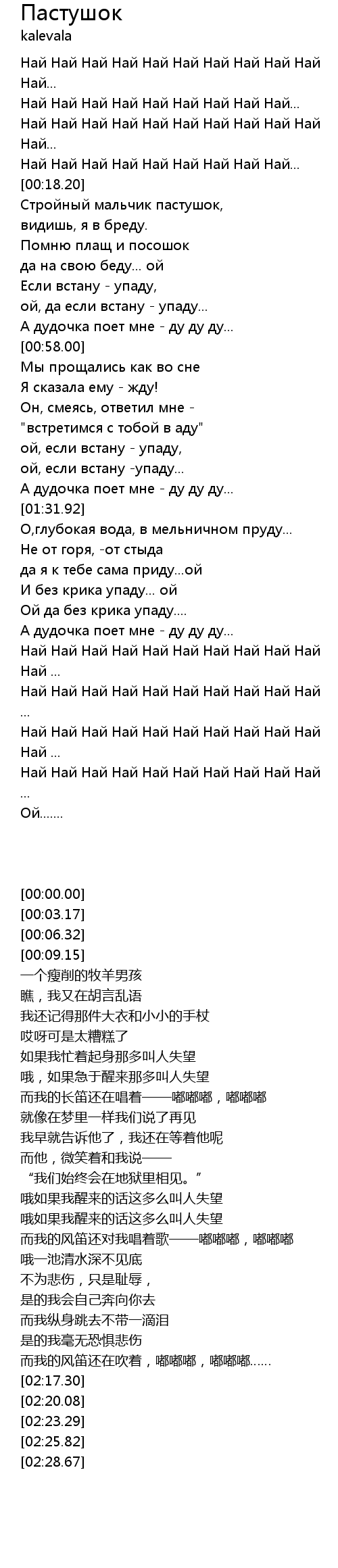 | [02:11.88] | А дудочка поет мне - ду ду ду... |