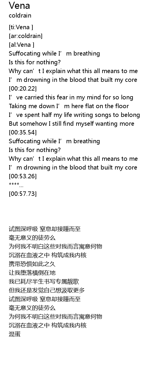 | [00:35.55] | Suffocating while I' m breathing |