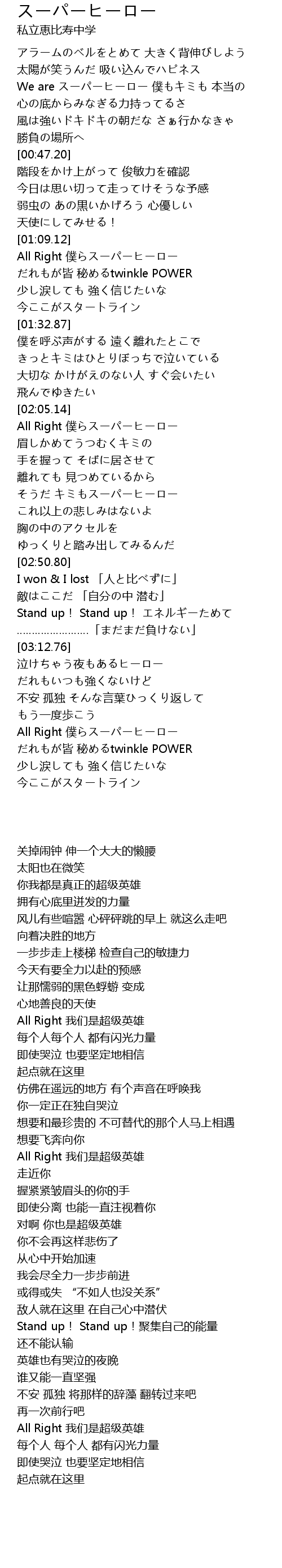 | [01:09.80] | All Right 僕らスーパーヒーロー |