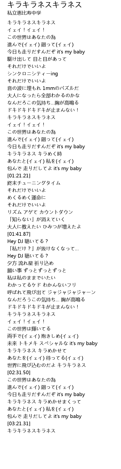 | [03:03.67] | キラキラネス キラめかせまくって |