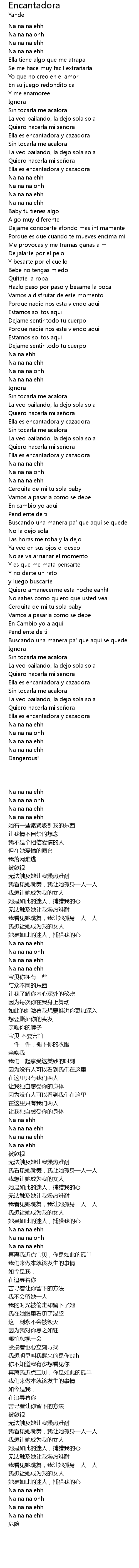 | [00:38.32] | La veo bailando, la dejo sola sola |