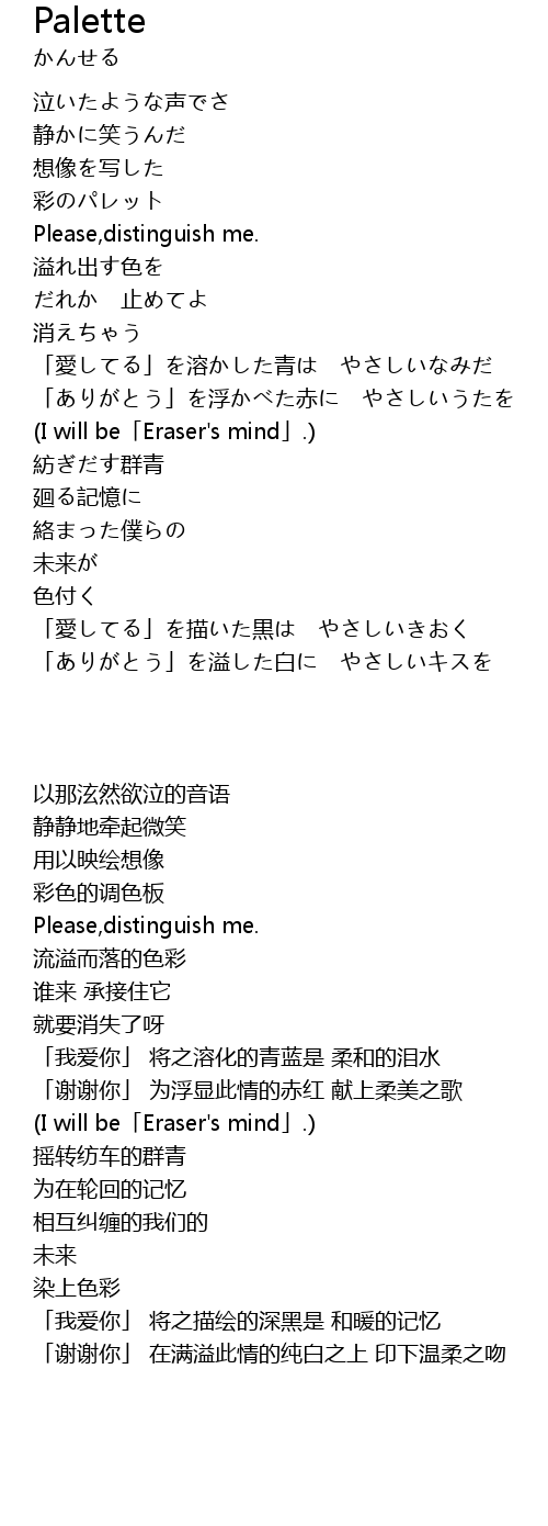 | [02:06.60] | (I will be「Eraser's mind」.) |