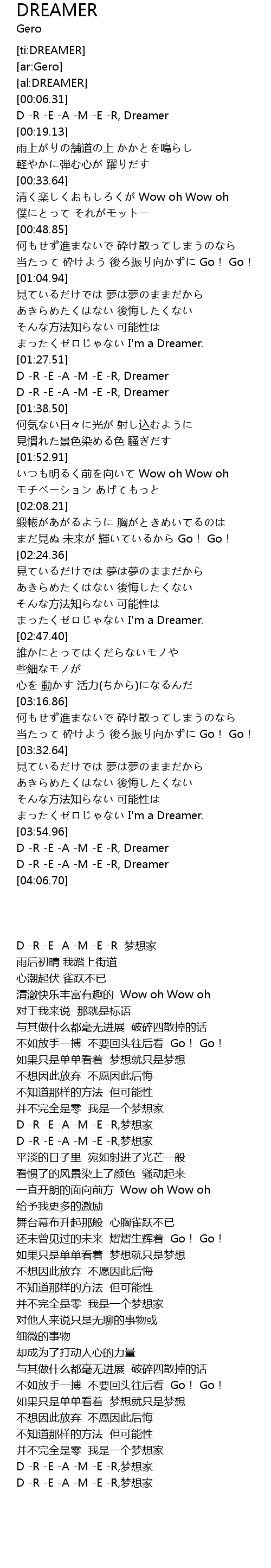 | [04:02.93] | D -R -E -A -M -E -R, Dreamer |