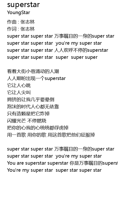| You are superstar superstar 你是万事瞩目的superstar | |