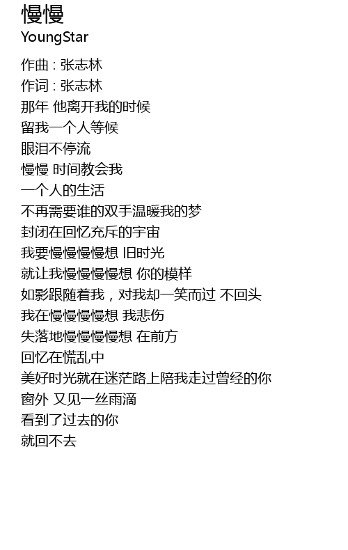 | wǒ yào màn màn màn màn xiǎng jiù shí guāng | |