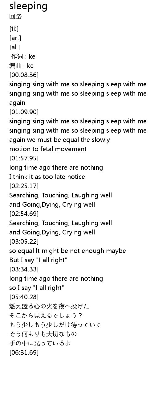 | [00:36.29] | singing sing with me so sleeping sleep with me |