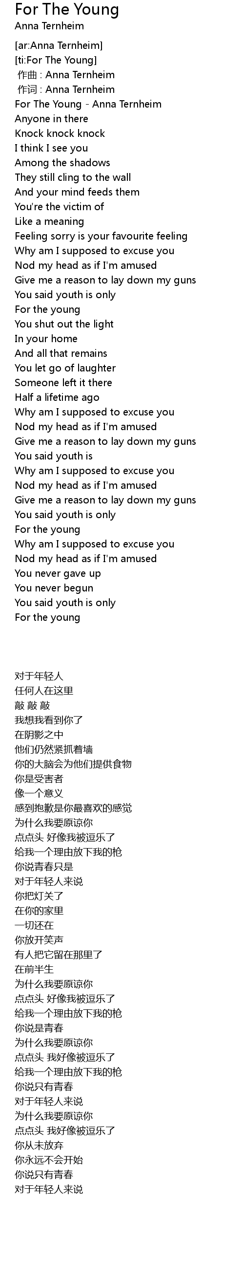 | [00:00.00] | 作曲 : Anna Ternheim |