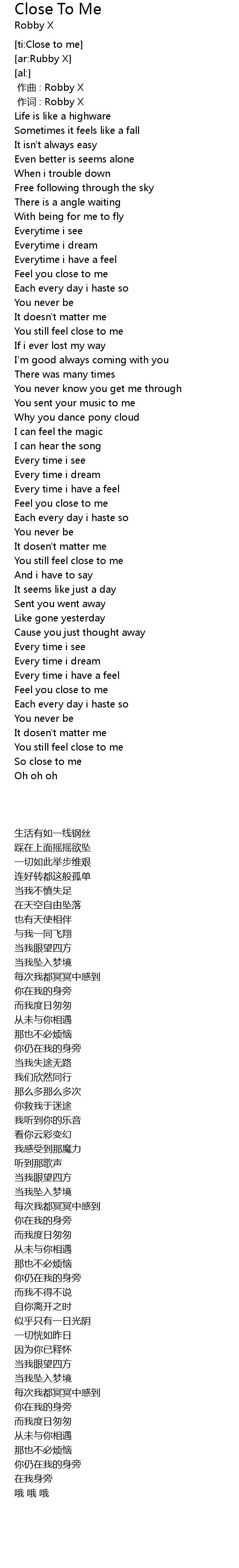| [00:01.00] | 作词 : Robby X |