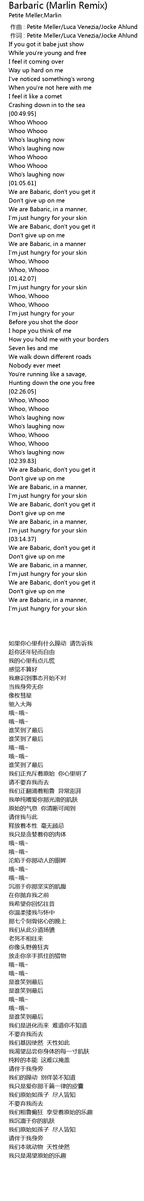 | [00:00.00] | zuo qu : Petite Meller Luca Venezia Jocke Ahlund |