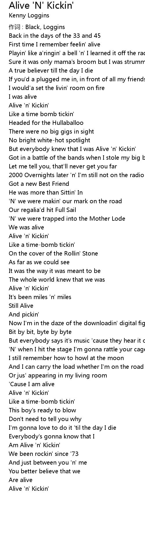 | But everybody knew that I was Alive ' n' Kickin' | |