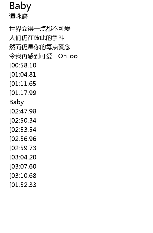 | [03:35.64][03:07.60][01:43.45] | 每次叫声 Oh my Baby |