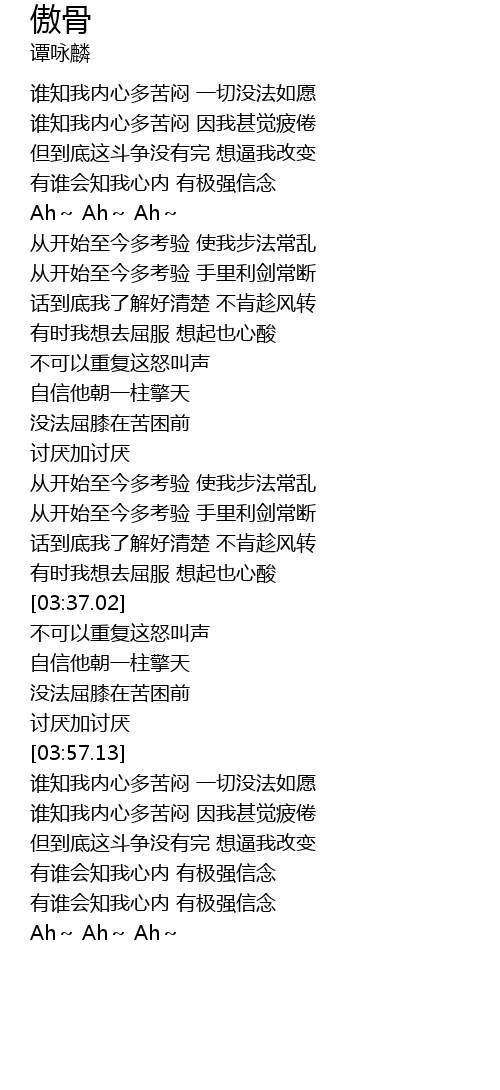 | [04:41.43] | 有谁会知我心内 有极强信念 |