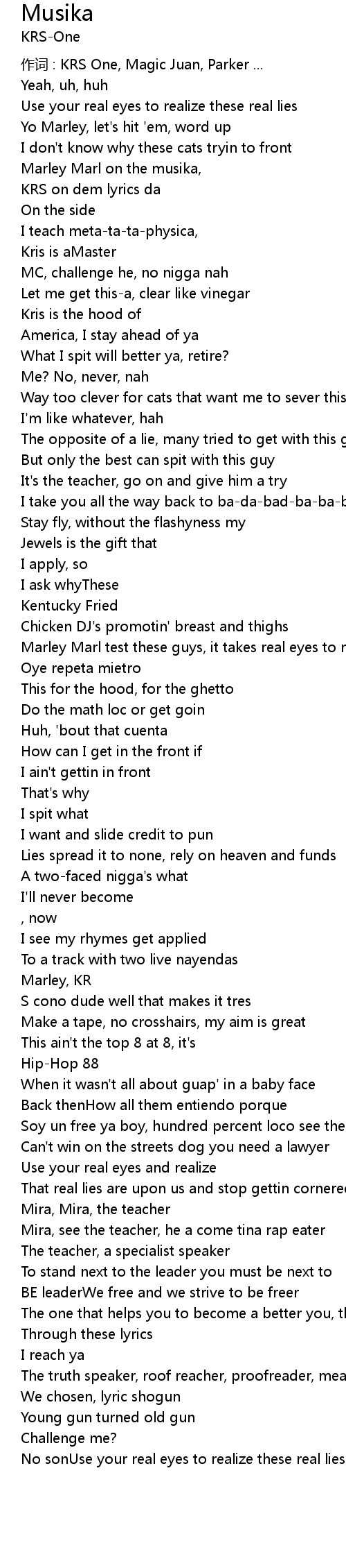 | 作词 : KRS One, Magic Juan, Parker ... | |