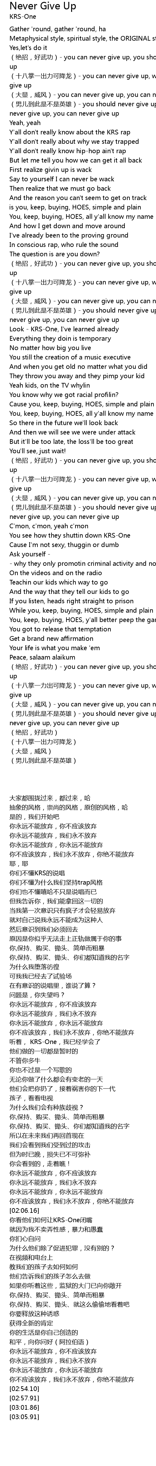 | [01:07.2] | (十八掌一出力可降龙)- you can never give up, we can never give up |